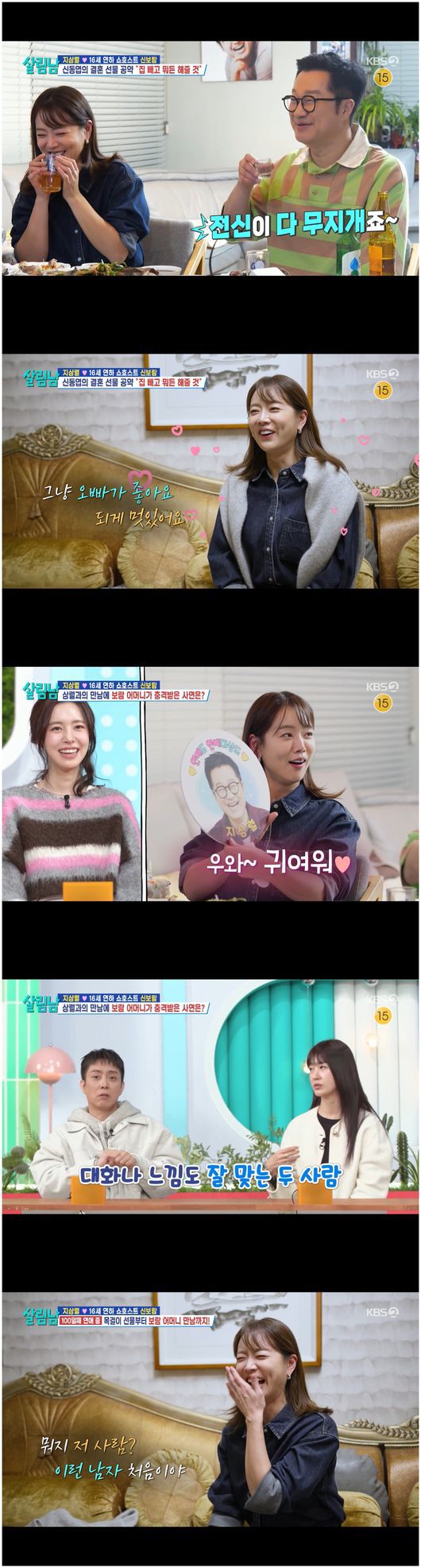 최양락은 “보통 데이트는 어디서 하냐”라며 물었다. 신보람은 “주로 차에서 한다. 둘 다 방송이 늦게 끝나니까”라고 답했다. 최양락은 “지상렬이 선물은 안 해줬냐”라며 재차 물었다. 신보람은 “사줬다. 사귀기 전에 무려 H 브랜드 목걸이를 사줬다. 그렇게 비싼 걸. 거기에 엄마 선물까지 사줬다”라며 지상렬의 묵묵한 다정함을 뽐냈다.