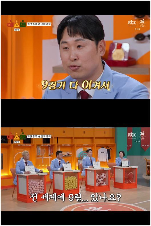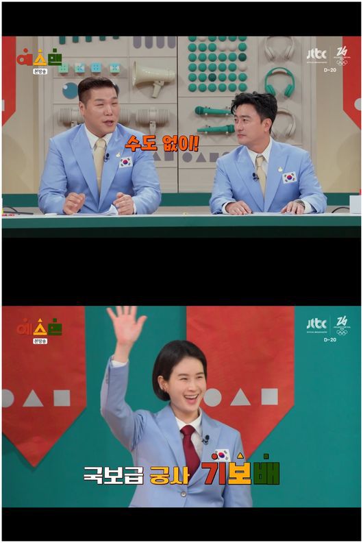 기보배는 “저는 그때 2002 월드컵을 보는데 16강 이탈리아전 할 때 내내 뛰다가 헤딩골 하나로 안정환이 모든 스포트라이트를 받아서 정말 운동인으로 좀 그랬다”라며 어린 마음에 그런 생각을 했다고 말했다. 하승진은 “양궁이 그런 말을 한다고? 아니, 태릉선수촌을 가면 정말 다들 땀 흘리면서 들어오는데 양궁만 선크림도 안 지워졌다”라며 기가 막혀했다.