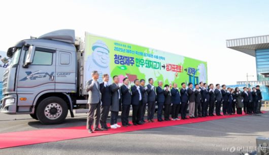 [제주=뉴시스] 우장호 기자 = 지난달 1일 오후 제주시 건입동 제주국제여객선터미널 인근 행사장에서 제주산 한우와 돼지고기의 첫 싱가포르 시장 진출을 기념하는 초도 물량 선적식이 열리고 있다. 2025.12.01. woo1223@newsis.com /사진=우장호 |