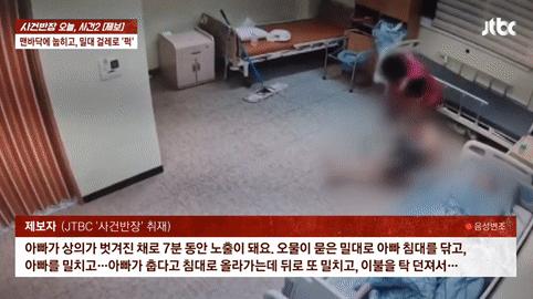 (서울=뉴스1) 신초롱 기자 = 첫 번째는 전남 여수의 한 요양원에서 80대 노인이 입소 약 두 달 만에 숨진 사건의 전말이 담긴 영상입니다. JTBC '사건반장'에서 공개된 CCTV 영상에는 폐렴 치료를 마치고 돌아온 피해자가 병실 바닥에 방치된 모습이 담겨 있습니다. 영상 속 요양보호사는 오물을 정리하는 과정에서 피해자의 머리를 뒤로 밀쳐 눕힌 채 그대로 두었고, 베개와 이불을 던지듯 놓아 맨바닥에 눕혔습니다. 이어 얼굴을 손으로 두 차례 때리는 장면도 확인됐습니다. 피해자는 이후 상태가 악화돼 결국 숨졌습니다. 문제가 된 요양보호사는 과거에도 폭행 전력이 있었던 것으로 드러났습니다.