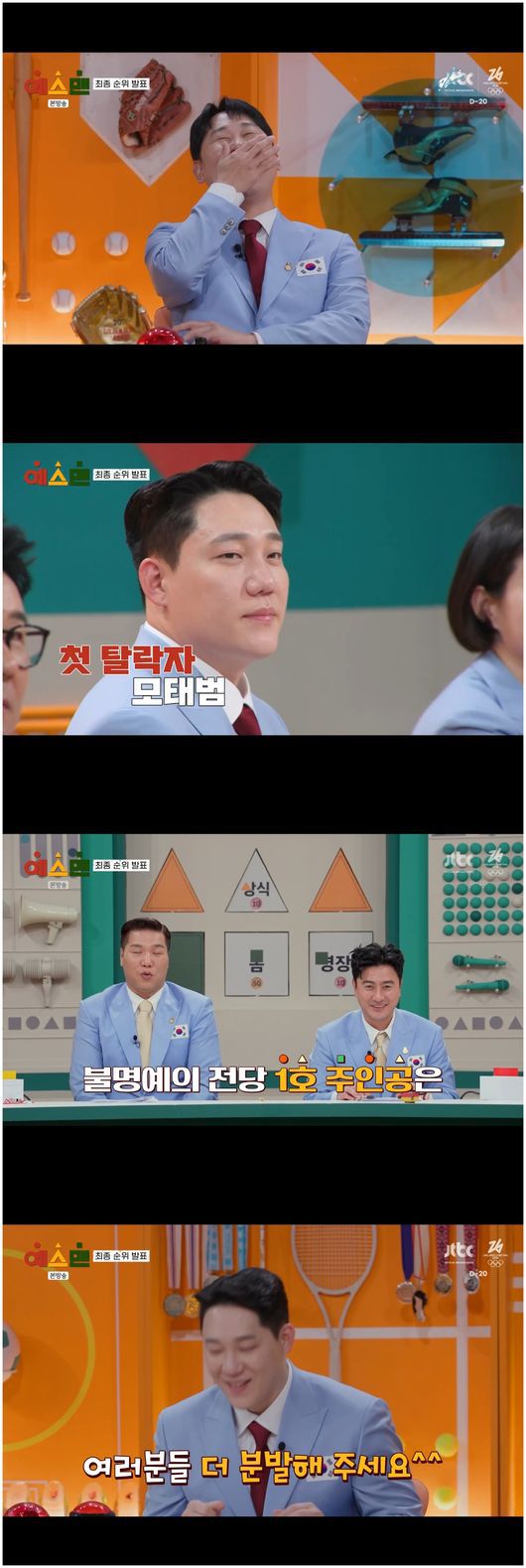 1회 우승자는 윤석민이었다. 윤석민은 “부담스러움도 크고, 어떻게 방송을 재미있게 해야할지 걱정했다. 그러니 여러분들도 좀 분발해라. 저는 다음 주에 뵙겠다”라며 여유롭게 소감을 말하더니 다른 사람들을 자극했다. 서장훈은 “아쉽게도 1호 탈락자는 모태범이다”라며 모태범의 벌칙을 공개했다./osen_jin0310@osen.co.kr