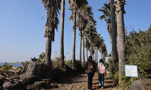 지난 17일 겨울치고는 기온이 올라 따뜻한 날씨 속에 제주 서귀포시 올레길에서 올레꾼들이 탐방을 즐기고 있다. 연합뉴스 |
