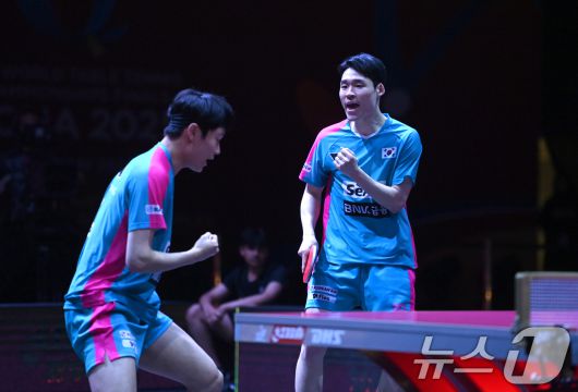 (서울=뉴스1) 서장원 기자 = 한국 남자 탁구 장우진(세아)-조대성(화성도시공사) 조가 월드테이블테니스(WTT) 시리즈에서 올해 첫 우승을 차지했다.