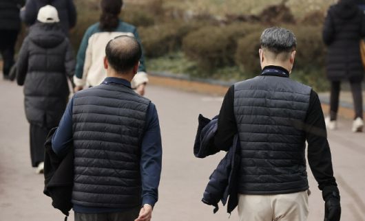 시민들이 외투를 벗고 산책하고 있다. /연합뉴스 |