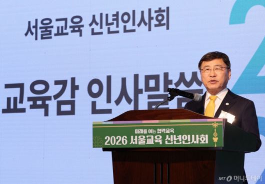 [서울=뉴시스] 홍효식 기자 = 정근식 서울시교육감이 13일 오후 서울 용산구 백범김구기념관에서 열린 ‘2026년 서울교육 신년인사회’에 참석해 신년 인사말을 하고 있다. (사진=서울시교육청 제공) 2026.01.13. *재판매 및 DB 금지 /사진=홍효식 |