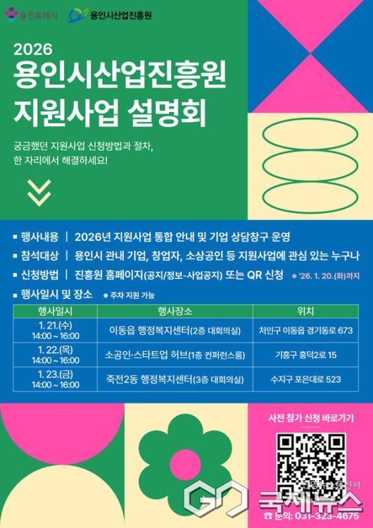 한편, 2026년 1월 지원사업 모집 일정과 세부 내용은 용인시산업진흥원 홈페이지 및 용인기업지원시스템을 통해 확인할 수 있다.