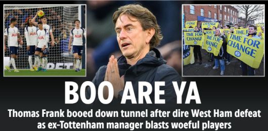 토트넘은 또 '야유의 밤'을 보냈다. 웨스트햄은 전반 15분 크리센시오 서머빌의 선제골을 앞세워 리드를 잡았다. 토트넘은 후반 19분 크리스티안 로메로의 동점골로 승부를 원점으로 돌렸다. 그러나 후반 추가시간인 48분 칼럼 윌슨에게 극장골을 허용했다. 윌슨의 골이 터진 후 VAR(비디오판독)이 이어졌지만 운명은 바뀌지 않았다.