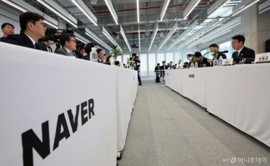 김민석 국무총리가 지난해 11월 27일 세종시 집현동 네이버데이터센터 각 세종을 방문, 최수연 네이버 대표와 김유원 네이버클라우드 대표, 김세웅 카카오 부사장, 이준희 삼성SDS 대표 등과 현장 간담회를 갖고 있다. /사진=뉴시스 |
