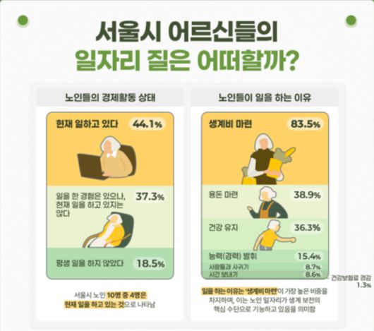 서울복지재단, 서울시 어르신 일자리 질 분석 인포그래픽. |