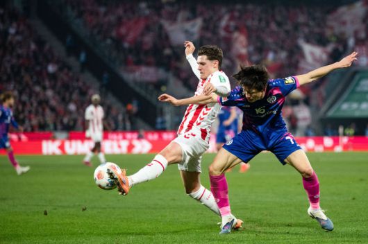 [쾰른=AP/뉴시스] 마인츠의 이재성(오른쪽)이 17일(현지 시간) 독일 쾰른 슈타디온에서 열린 2025-26 분데스리가 18라운드 쾰른과 경기 중 공을 다투고 있다. 이재성은 74분을 뛰었고, 마인츠는 1-2로 역전패했다. 2026.01.18.