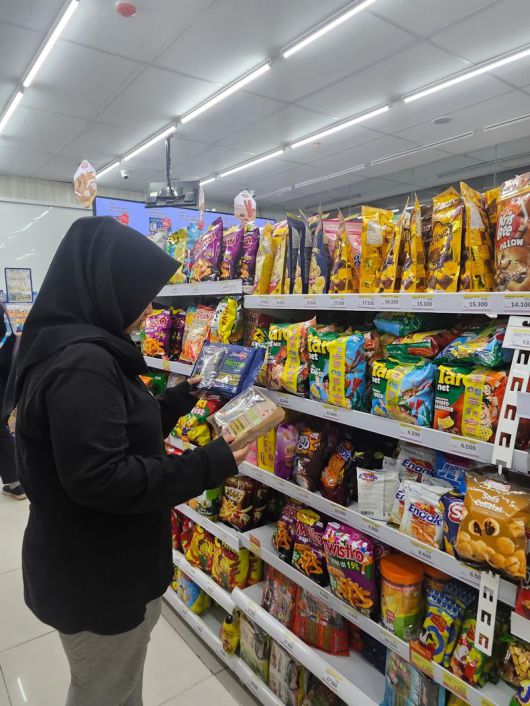 지난 16일 인도네시아 자카르타에 위치한 대형마트에서 한 인도네시아 소비자가 대상이 만든 인도네시아 김 현지 브랜드 '마마수카'의 제품을 자세히 살펴보고 있다. 사진=아울리아 마울리다 함다니 통신원 |