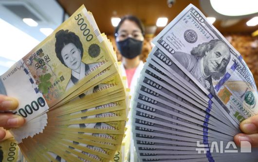 [서울=뉴시스] 황준선 기자 = 22일 서울 중구 하나은행 위변조대응센터에서 직원이 달러화와 원화를 정리하고 있다. 원·달러 환율이 1370원대에 진입하며 6개월여 만에 최저 수준으로 하락하는 등 무디스의 미국 신용등급 강등에 미국의 경기 균열과 재정 적자 우려로 달러화가 약세를 보이고 있다. 2025.05.22. hwang@newsis.com |