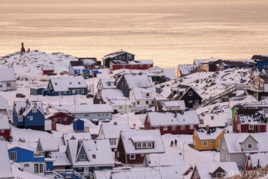 지난 14일(현지 시간) 그린란드 누크에서 주민들이 눈 쌓인 거리를 걸어가고 있다. 2026.01.15. /사진=민경찬 |