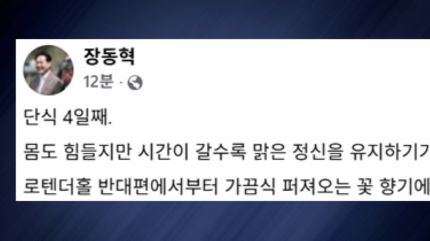 통일교와 공천 헌금 의혹 등 '쌍 특검'을 요구하며 나흘째 단식을 이어가는 국민의힘 장동혁 대표가 몸도 힘들지만, 시간이 갈수록 맑은 정신을 유지하기 힘들다고 밝혔습니다.