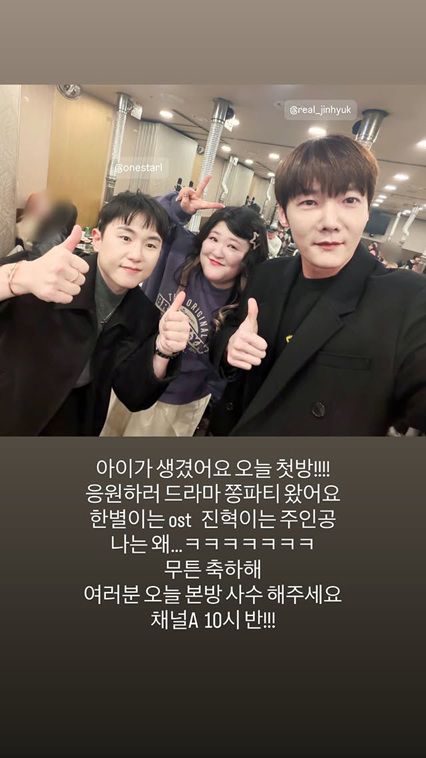 최진혁의 드라마를 홍보하며 의리를 과시한 이국주는 뒤풀이 현장에서 함께 드라마를 시청하는 모습을 공개하는가 하면, "'아이가 생겼어요' 드라마 쫑파티. 배우님들 다 가셨는데 나 왜 남아있지?"라며 새벽 인증 사진을 게재해 눈길을 끈다.