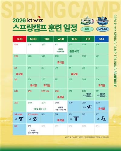 kt 2026시즌 스프링캠프 훈련 일정 |