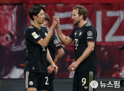 [라이프치히 로이터=뉴스핌] 장환수 스포츠전문기자= 바이에른 뮌헨 해리 케인(오른쪽)이 18일 라이프치히와 원정 경기에서 후반 역전 결승골을 넣은 뒤 수비수 이토 히로키와 하이파이브를 하고 있다. 2026.01.18 zangpabo@newspim.com |
