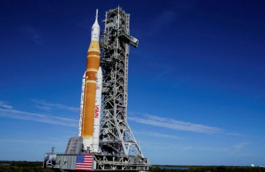 NASA는 17일(현지시간) 플로리다 케네디 우주센터에서 차세대 초대형 발사체인 우주발사시스템(SLS) 로켓을 발사대로 이동시켰다고 밝혔다.