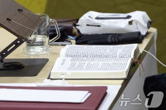 (서울=뉴스1) 이승배 기자 = 장동혁 국민의힘 대표가 18일 서울 여의도 국회에서 더불어민주당의 통일교 및 공천뇌물 특검 수용을 촉구하며 4일째 단식을 하는 가운데 책상에 성경이 놓여있다. 2026.1.18/뉴스1photolee@news1.krCopyright ⓒ 뉴스1. All rights reserved. 무단 전재 및 재배포, AI학습 이용 금지.