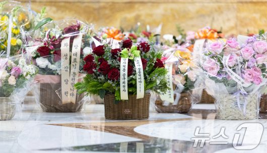 (서울=뉴스1) 이승배 기자 = 장동혁 국민의힘 대표가 18일 서울 여의도 국회에서 더불어민주당의 통일교 및 공천뇌물 특검 수용을 촉구하며 4일째 단식을 하는 가운데 로텐더홀에 장 대표를 응원하는 꽃바구니가 놓여있다. 2026.1.18/뉴스1photolee@news1.krCopyright ⓒ 뉴스1. All rights reserved. 무단 전재 및 재배포, AI학습 이용 금지.