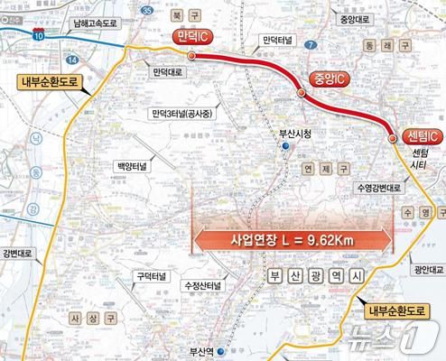 부산 내부순환(만덕~센텀) 도시고속화도로 위치도. (부산시 제공. 재판매 및 DB금지) |