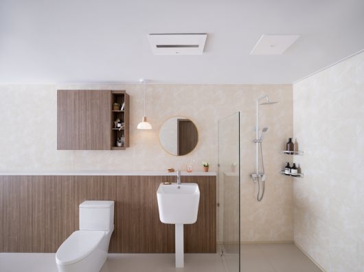 LG전자의 욕실 공기질 관리 시스템인 ‘LG 퓨리케어 바스에어시스템’이 설치된 욕실의 모습. LG전자 제공 |