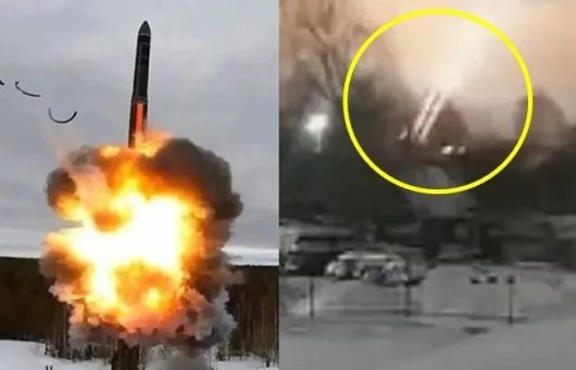 러시아의 다른 대륙간탄도미사일 발사 장면과 지난 9일 르비우에 떨어지는 오레시니크 모습. AP 자료사진 |