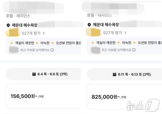 숙박예약 플랫폼에서 조회한 해운대 소재 한 레지던스 호텔 가격. 1주일 만에 5배 넘게 올랐다. (여기어때 화면 갈무리. 재판매 및 DB금지) |