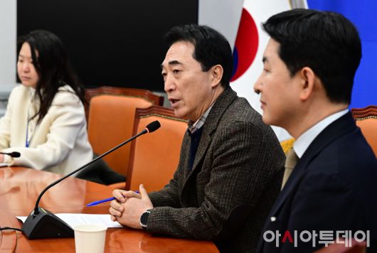 아시아투데이 이병화 기자 = 박수현 더불어민주당 수석대변인이 18일 국회에서 현안 관련 기자간담회를 갖고 있다.