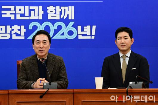 아시아투데이 이병화 기자 = 박수현 더불어민주당 수석대변인이 18일 국회에서 현안 관련 기자간담회를 갖고 있다.