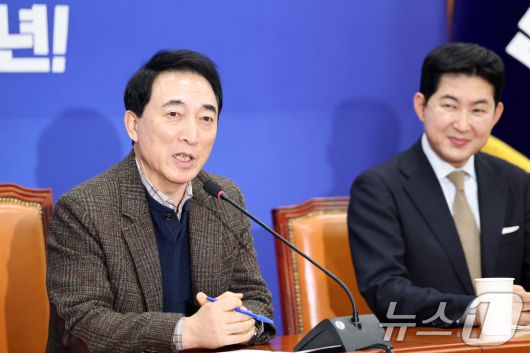 (서울=뉴스1) 이승배 기자 = 박수현 더불어민주당 수석대변인이 18일 서울 여의도 국회에서 열린 현안 기자간담회에서 취재진의 질문에 답변하고 있다. 2026.1.18/뉴스1