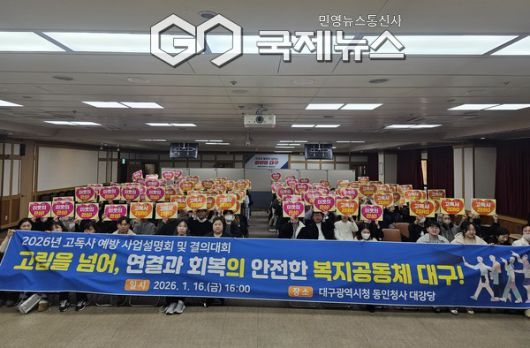 대구광역시에 따르면, " 1월 16일, 시청 동인청사에서 9개 구·군 및 읍·면·동 고독사 예방사업 담당 공무원 160여 명이 참석한 가운데 '2026년 고독사 예방 사업설명회 및 결의대회'를 개최했는 데 이번 행사는 2026년 고독사 예방 정책의 추진 방향을 공유하고 현장 중심의 대응 역량을 강화하는 한편, 지역사회 차원의 공동 책임과 실천 의지를 다지기 위해 마련됐다."고 전했다.
