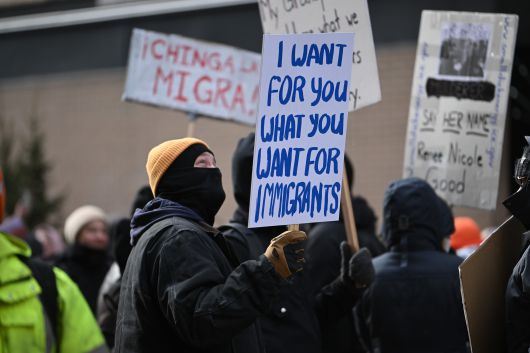 앞서 7일(현지 시각) 미네소타주 미니애폴리스에서 이민세관단속국(ICE) 요원이 차량 검문에 저항한 미국인 여성을 총으로 쏴 숨지게 한 후, 현지에서는 이에 반발한 시위가 이어지고 있다.