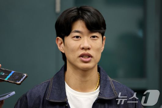 미국프로야구 메이저리그(MLB) 샌디에이고 파드리스와 4년 계약을 맺은 송성문이 23일 오전 인천국제공항을 통해 귀국해 취재진과 인터뷰를 하고 있다. 2025.12.23/뉴스1 ⓒ News1 이광호 기자 |