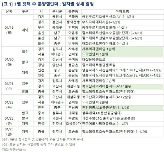 [아이뉴스24 이효정 기자]1월 셋째 주에는 전국 4개 단지 총 3260가구(일반분양 2357가구)가 공급된다.
