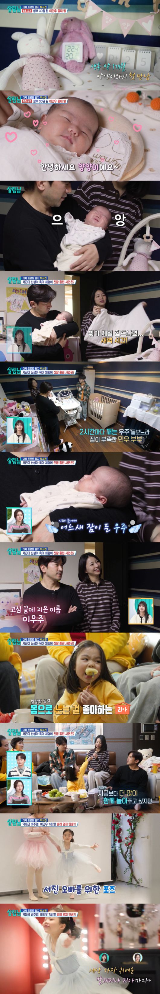 이민우의 아내는 "새벽시간이 힘들다. 2시간 마다 깬다"고 했고, 우주는 어느새 아빠 품에서 잠이 들었다. 이민우는 "이때가 제일 행복하다. 눕히고 좀 쉴 수 있다. 그때 자야 한다"고 했다. 또한 아내는 딸 이름에 대해 "우주로 정했다"며 웃었다.