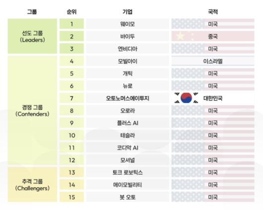 가이드하우스는 PwC 공공·컨설팅 부문에서 분사한 기업이다. 2015년부터 전세계 자율주행 기업 역량을 평가해왔다. 오토노머스에이투지는 2023년 13위, 2024년 11위에 이어 올해 7위를 기록했다. 2년 연속 순위가 상승했다.