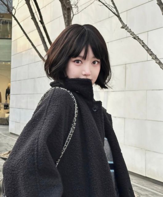 특히 턱선 라인에 맞춘 깔끔한 단발 헤어스타일이 눈에 띈다. 세련되고 트렌디한 느낌이 짙다. 단발과 무채색 의상의 대비, 선명한 레드 립 메이크업이 어우러져 화사한 생기를 더했다. 자연스럽게 흐르는 단발과 또렷한 이목구비가 조화를 이룬다.