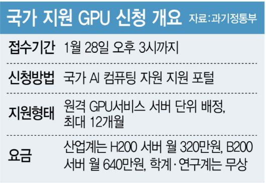 [이데일리 김현아 기자] 정부가 추가경정예산으로 확보한 고성능 GPU 자원에 대한 사용 신청을 받고 있다. 마감은 오는 28일 오후 3시다. 학계·연구기관은 무상으로, 산업계는 자부담 방식으로 지원받는 구조여서 대학·연구소·스타트업의 신청이 몰릴 전망이다.