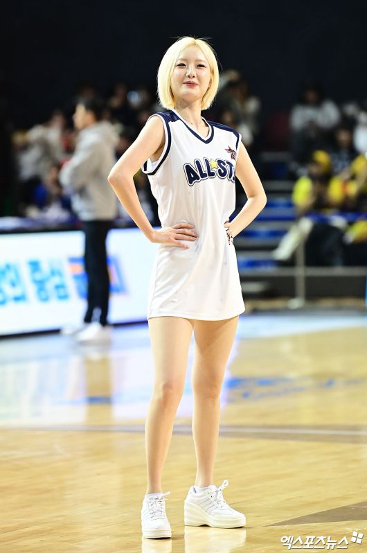 (엑스포츠뉴스 잠실, 박지영 기자) 18일 오후 서울 송파구 잠실실내체육관에서 열린 '2025-2026 LG전자 프로농구 올스타전' 팀 브라운과 팀 코니의 경기, 치어리더 서현숙이 공연을 선보이고 있다.박지영 기자 jypark@xportsnews.com