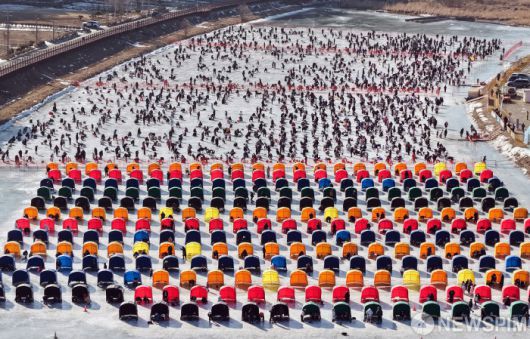 [서울=뉴스핌] 18일 주말을 맞아 강원도 평창군 진부면 오대천 일원에 열린 평창송어축제 송어얼음낚시장에 많은 방문객이 몰려 겨울을 즐기고 있다. ‘겨울이 더 즐거운 송어 나라, 평창’이라는 주제로 열린 올해 축제는 내달 9일 까지 방문객을 맞는다. [사진=평창군청] 2026.01.18 photo@newspim.com
