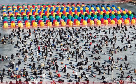 [서울=뉴스핌] 18일 주말을 맞아 강원도 평창군 진부면 오대천 일원에 열린 평창송어축제 송어얼음낚시장에 많은 방문객이 몰려 겨울을 즐기고 있다. ‘겨울이 더 즐거운 송어 나라, 평창’이라는 주제로 열린 올해 축제는 내달 9일 까지 방문객을 맞는다. [사진=평창군청] 2026.01.18 photo@newspim.com