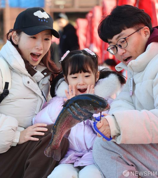 [서울=뉴스핌] 18일 주말을 맞아 강원도 평창군 진부면 오대천 일원에 열린 평창송어축제를 찾은 방문객들이 송어 얼음낚시를 즐기고 있다. ‘겨울이 더 즐거운 송어 나라, 평창’이라는 주제로 열린 올해 축제는 내달 9일 까지 방문객을 맞는다. [사진=평창군청] 2026.01.18 photo@newspim.com |