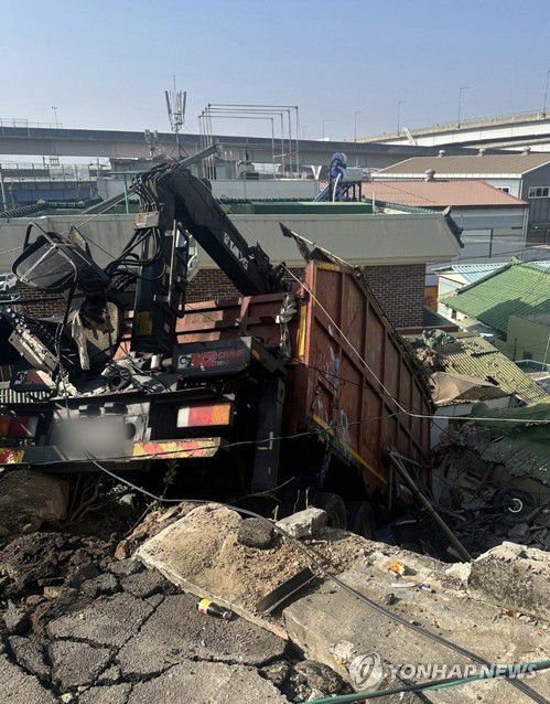 (김해=연합뉴스) 18일 오전 11시 17분께 경남 김해시 불암동 한 언덕 내리막길에서 60대 A씨가 몰던 화물차가 전신주를 들이받고 주택가로 떨어지는 사고가 발생했다.