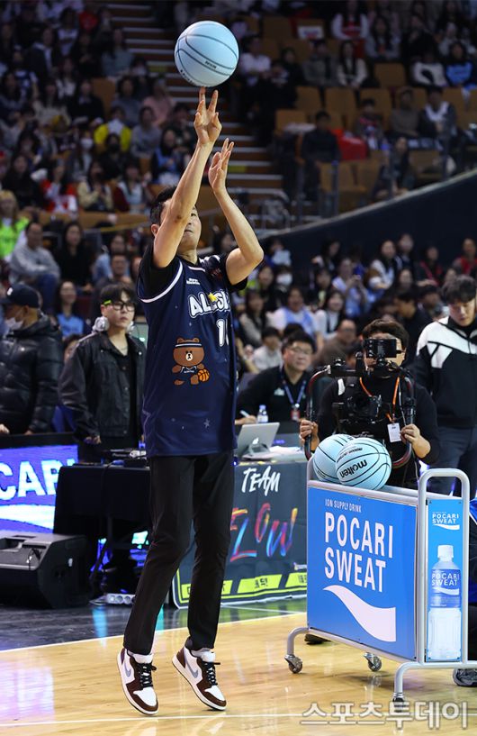 [스포츠투데이 팽현준 기자] 18일 서울 잠실실내체육관에서 열린 2025-2026 프로농구 올스타전에서 전희철 감독이 3점슛 콘테스트를 하고 있다. 2026.01.18. [스포츠투데이 팽현준 기자 sports@stoo.com]