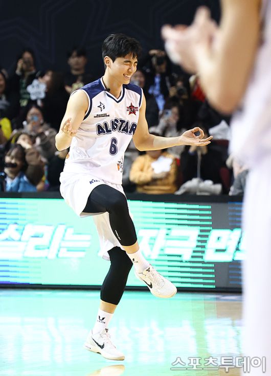 [스포츠투데이 팽현준 기자] 18일 서울 잠실실내체육관에서 열린 2025-2026 프로농구 올스타전에서 박지훈이 골 세리머니를 하고 있다. 2026.01.18. [스포츠투데이 팽현준 기자 sports@stoo.com]