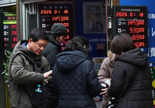 18일 서울 명동의 환전소 밀집지역. 연합뉴스 |