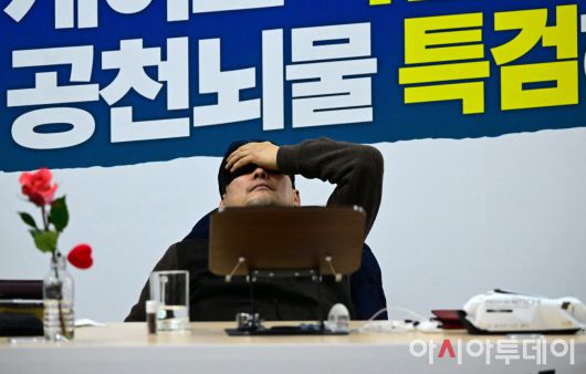 아시아투데이 이병화 기자 = 장동혁 국민의힘 대표가 18일 국회 로텐더홀에서 '더불어민주당의 공천 뇌물·통일교 게이트 특검 수용'을 촉구하며 단식농성을 4일째 이어가고 있는 가운데 안대를 쓰고 눈을 붙이고 있다. ⓒ "젊은 파워, 모바일 넘버원 아시아투데이"