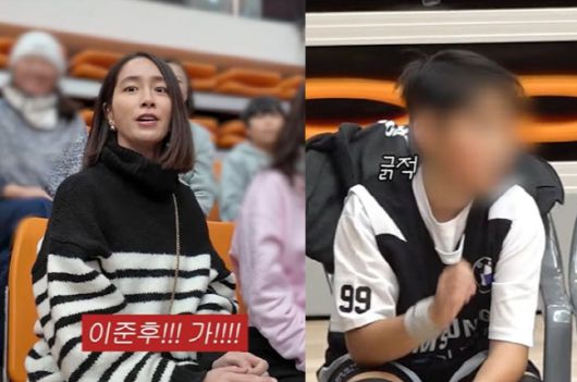 사진 속에는 아들 준후 군의 농구 대회 출전을 위해 홍천 체육관을 찾은 이민정의 모습이 담겨있다.