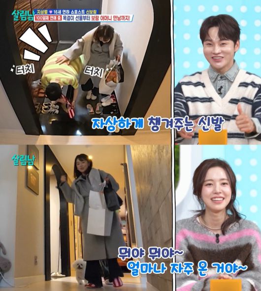 곧이어 신보람이 집에 방문했다. 신발을 벗으며 시작된 스킨십이 눈길을 끄는 가운데 반려견도 신보람을 익숙하게 반겼다.